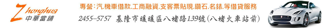 中華當舖是一間經過政府立案合法成立的合法基隆當舖,正派經營汽車借款、機車借款、借錢、票貼、支票借款,以專業、負責且積極的態度來服務我們每一位客戶。